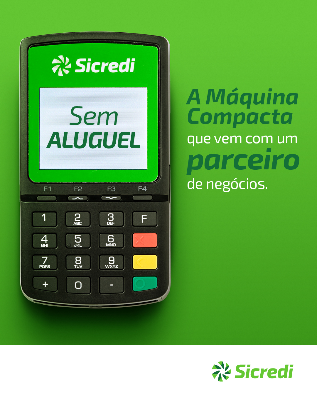 A Máquina Compacta de Cartões do Sicredi aceita as bandeiras Visa, Master, Elo, Hipercard, Amex, Sorocred, Banescard, Ticket, Sodexo, Alelo e Cabal Vale. Com ela, por meio do portal de serviços, os associados conseguem gerenciar suas vendas e controlar os rendimentos do seu negócio, por meio do portal de serviços da Compacta. Para adquirir a máquina compacta do Sicredi, o associado precisa ir até sua agência do Sicredi e realizar a contratação.