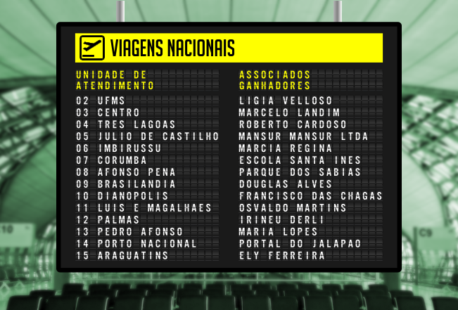 A Cooperativa Sicredi União MS/TO também realizou seus sorteios, no total foram 14 prêmios, 1 por unidade de atendimento, vale viagem no valor de R$2.900,00 cada.